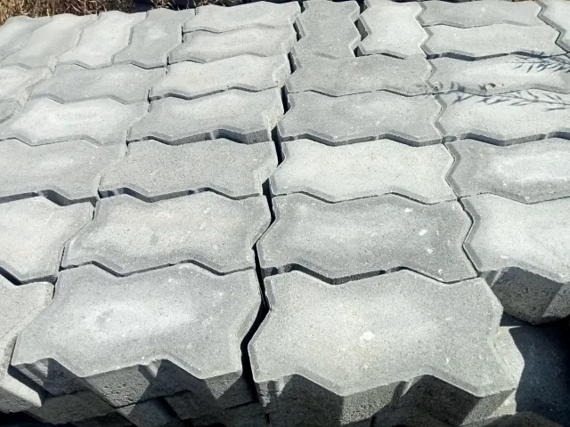 Detalles del productoAdoquines de hormigón en forma de S para exteriores. Son de color gris y se venden en conjunto.