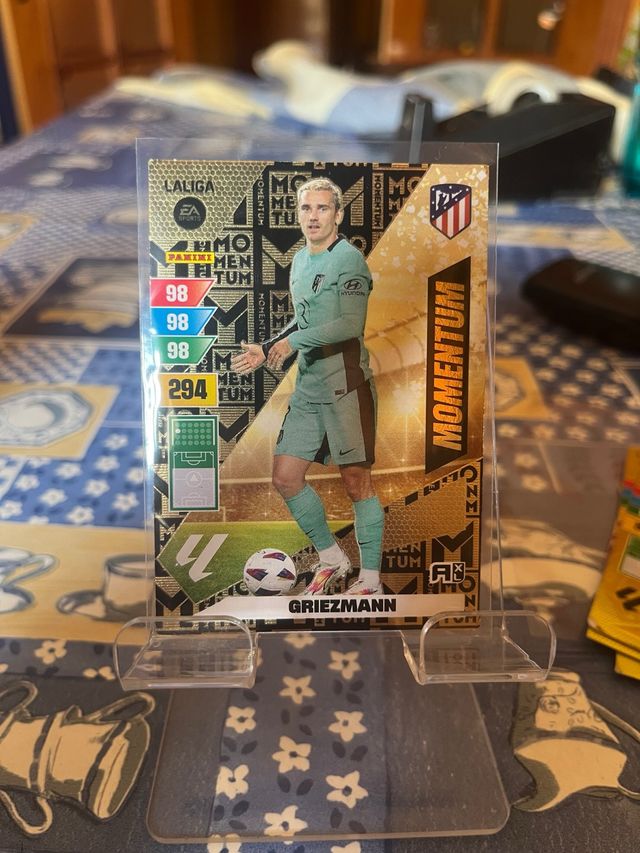 Detalles del productoTarjeta cromos de Antoine Griezmann. Es una carta de la colección Momentum de LaLiga.