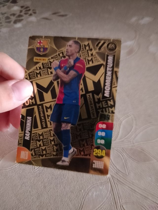 Detalles del productoCarta de Raphinha de la colección Adrenalyn 24-25. Es una carta dorada, en apariencia impecable.