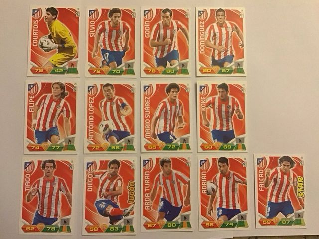 cromos Adrenalyn XL 2011-12 de la plantilla del Atletico de Madrid. se pueden vender sueltos a 0,20€ cada unidad o juntos a 2,50€