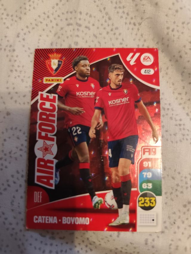 Detalles del productoCromo de Adrenalyn XL de la temporada 2024-25. Se trata de la carta de los jugadores Catena y Boyomo. - Es una carta de la liga LALIGA. - La carta está en buen estado.tocasa esquinas
