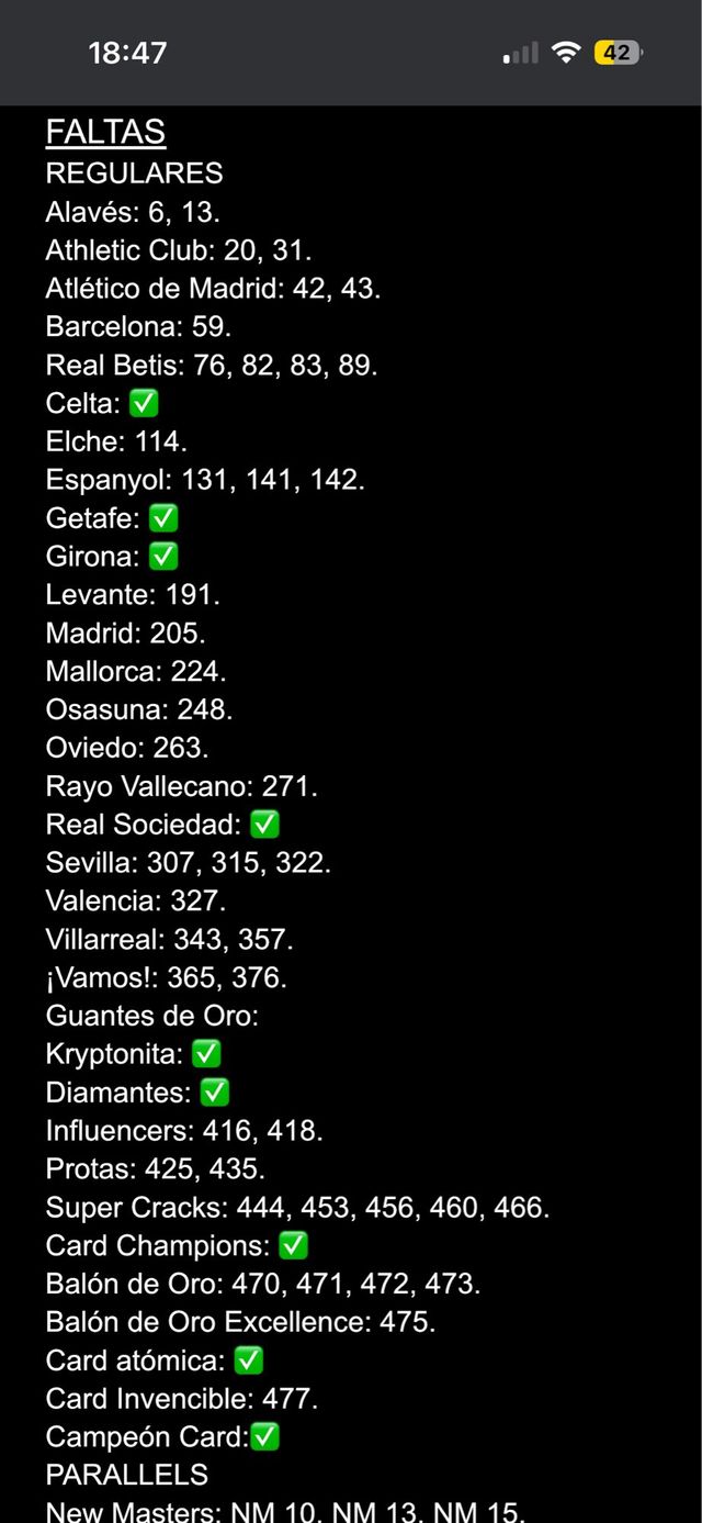 Colección de cromos Adrenalyn XL temporada 25/26. Se venden o cambian las repetidas indicadas. Mis faltas estan en las dos primeras fotos