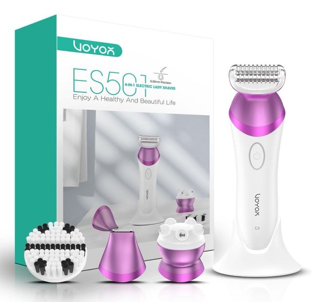 ✅Afeitadora multifuncional con 4 cabezales intercambiables para todas tus necesidades de afeitado y cuidado de la piel. Incluye cabezal 3 en 1 para cuerpo, bikini y facial, cabezal de precisión, masaje y exfoliante. Sus 2 velocidades y motor potente aseguran un afeitado perfecto en cualquier zona incluso la más delicada. Su diseño elegante en color morado se carga rápido por USB o base, para que nunca falte batería. La opción impermeable te permite usarla en la ducha. Un indispensable 4 en 1 para un método de afeitado eficaz, cómodo y con resultado perfecto.