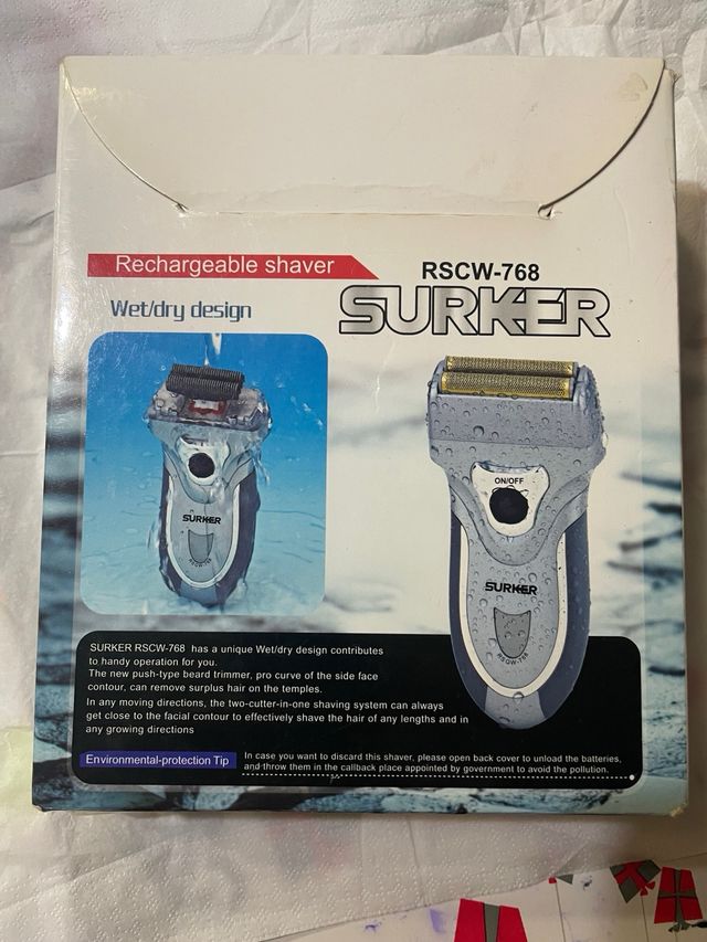 afeitadora recargable marca surker en su caja original con cable para recargar y accesorios