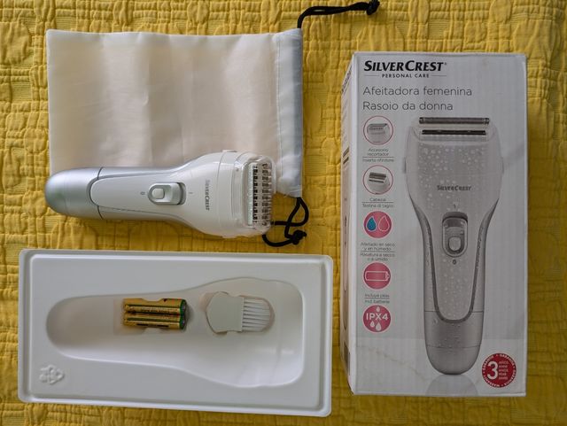 Detalles del productoAfeitadora femenina de la marca Silver Crest nueva a estrenar, funciona con pilas que se incluyen y se puede usar en seco y humedo. Contiene accesorio recortador y bolsa para guardar junto con instrucciones.