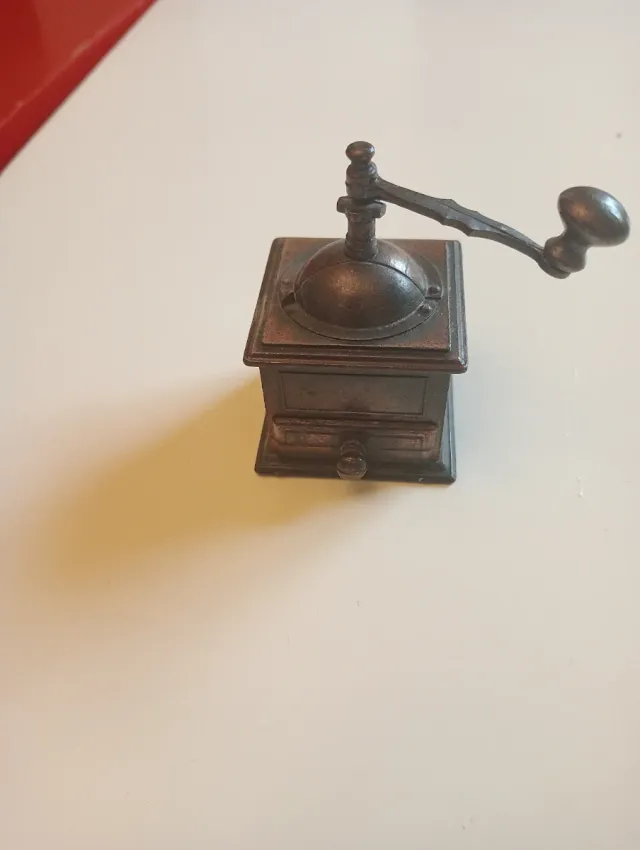 Afilador con diseño de molinillo de café antiguo. Un objeto decorativo con un toque vintage. - Material: Metal - Color: Bronce envejecido