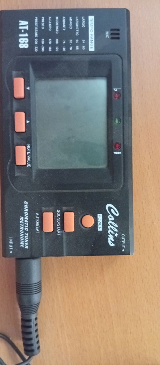 Detalles del productoAfinador Collins AT-168 para instrumentos musicales. Incluye función de metrónomo.