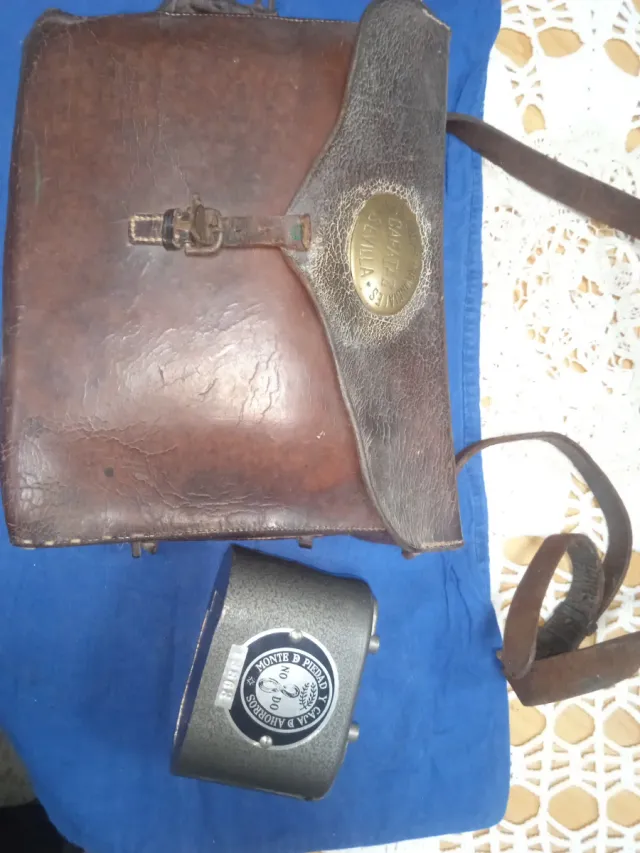 - El aflojar es de cuero marrón con detalles metálicos.