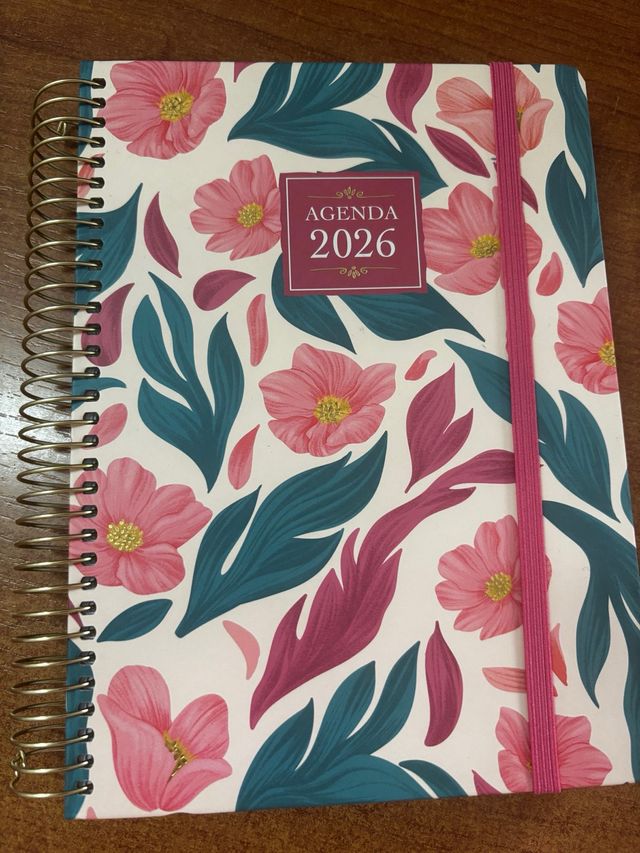Detalles del productoAgenda para el año 2026 con un diseño floral vibrante. Perfecta para organizar tus citas y tareas.