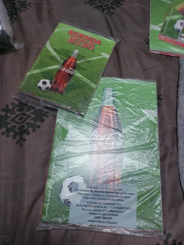 Detalles del producto2 Agendas escolares temática de Coca Cola y fútbol para el curso 2013-2014.
