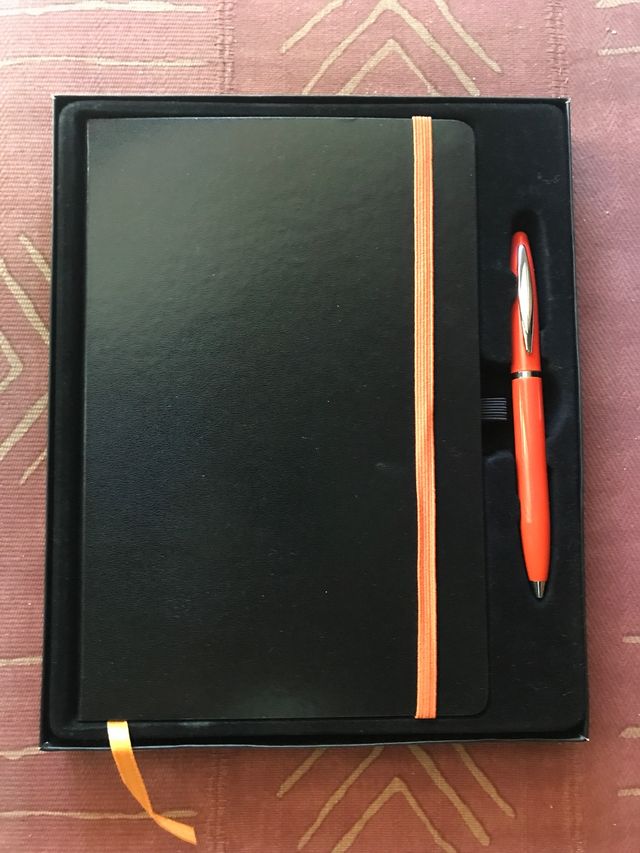 Agenda Negra y Bolígrafo Naranja