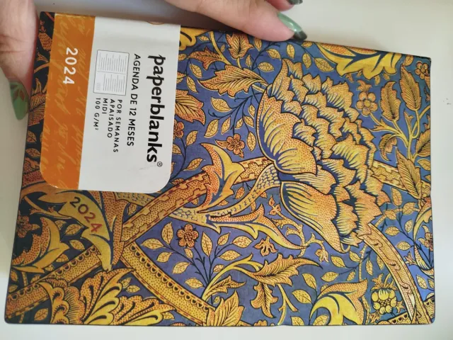 Detalles del productoAgenda Paperblanks de 12 meses del año 2024. Diseño con tonos dorados