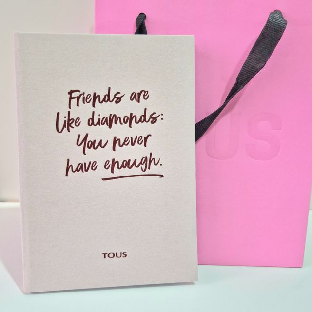 Detalles del productoPreciosa agenda Tous con frase en color marrón. Incluye una bolsa de la marca Tous de color rosa. - Tamaño pequeño y elegante. - Ideal para regalo. Tacto aterciopelada. Solo envios impost y sl