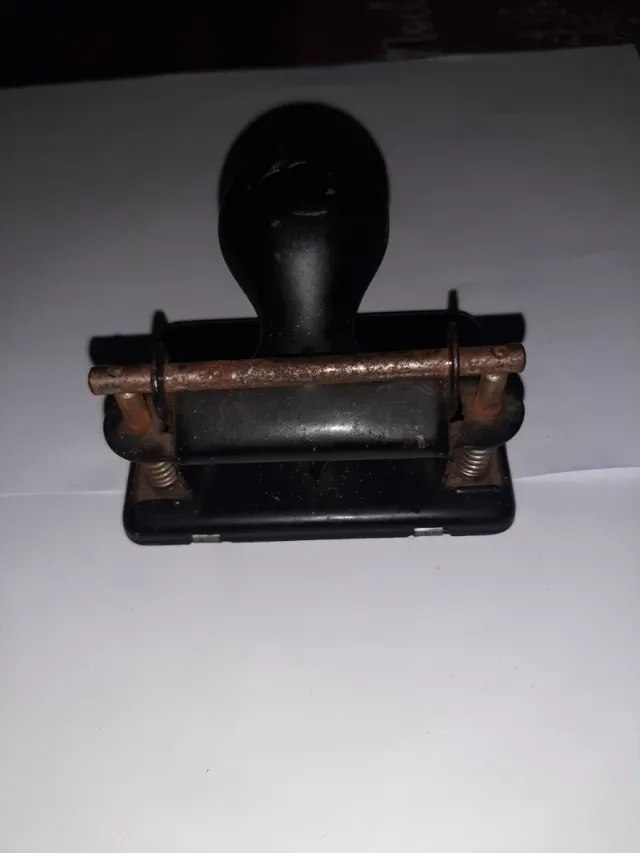 Esta es una agujereadora de metal muy antigua. Su diseño clásico la hace un objeto interesante.