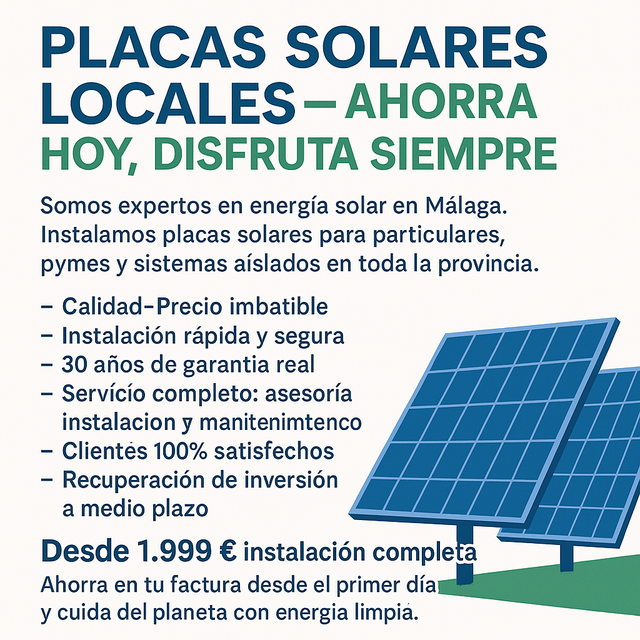 Detalles del productoPLACAS SOLARES LOCALES – AHORRA HOY, DISFRUTA SIEMPRE