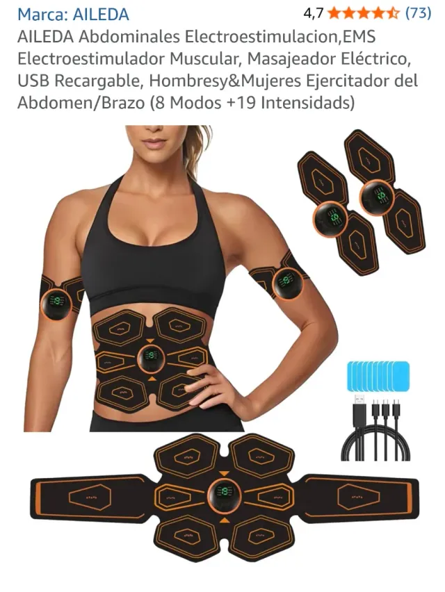 Detalles del productoElectroestimulador muscular AILEDA para abdomen y brazos.