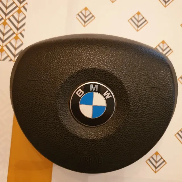 Airbag original para BMW Serie E. Pieza de repuesto para el volante. - Logo BMW central. - Acabado en cuero negro.
