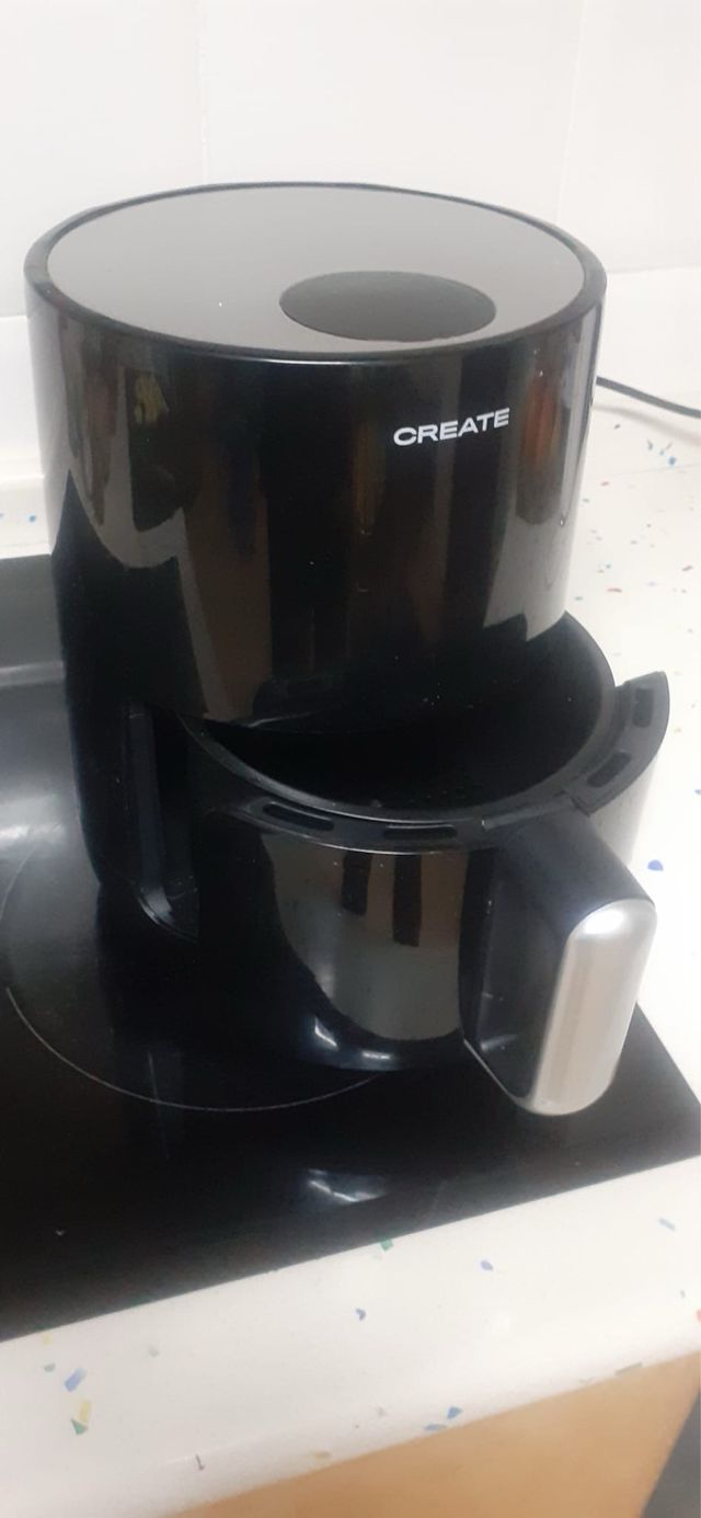 Detalles del productoFreidora de aire de la marca Create con una capacidad de 1.5 litros.