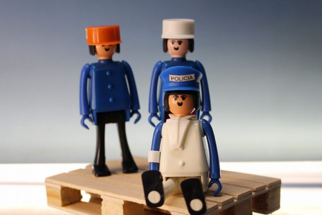 Airgam Boy. 3 Muñecos con gorras de plato, uno es policía.