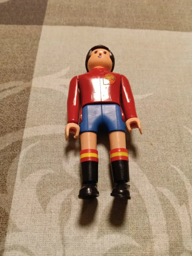 Figura de la Selección Española de fútbol de Airgamboys. - Uniforme rojo y azul. - Medias con franjas rojas y amarillas. - Botas negras.
