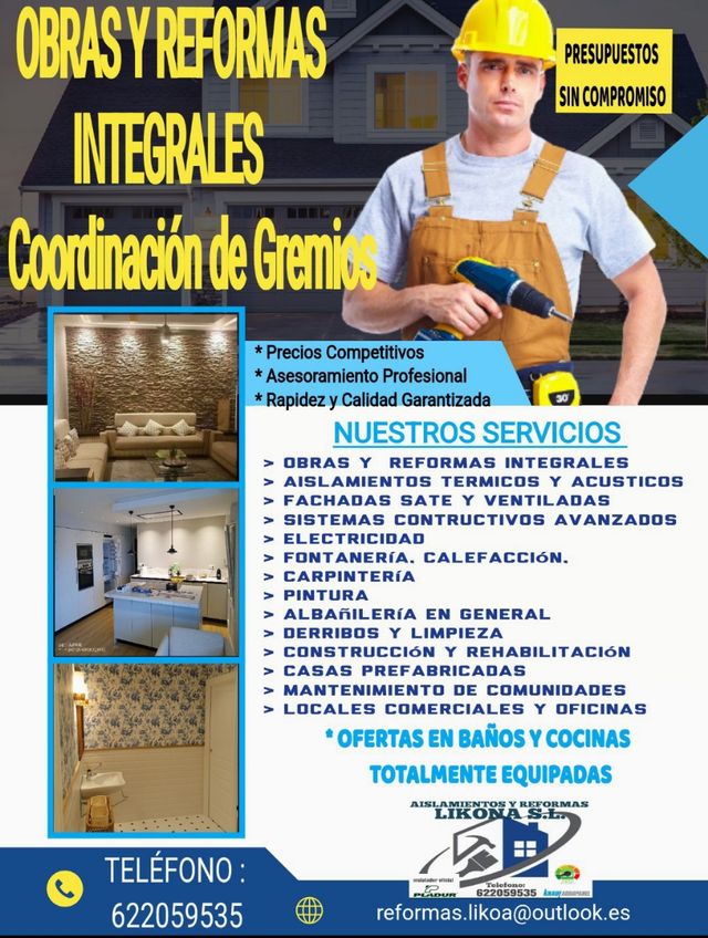 Empresa de Reforma integral , especialistas en aislamientos termicos y acusticos, albañilería en general y coordinación de gremios .
