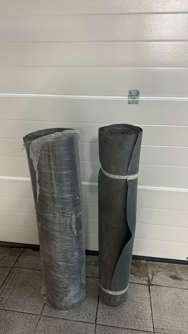 Rollo de material aislante para suelos. Ideal para proteger y aislar. Uno a estrenar y el otro casi completo. - Color gris oscuro. - Material flexible.