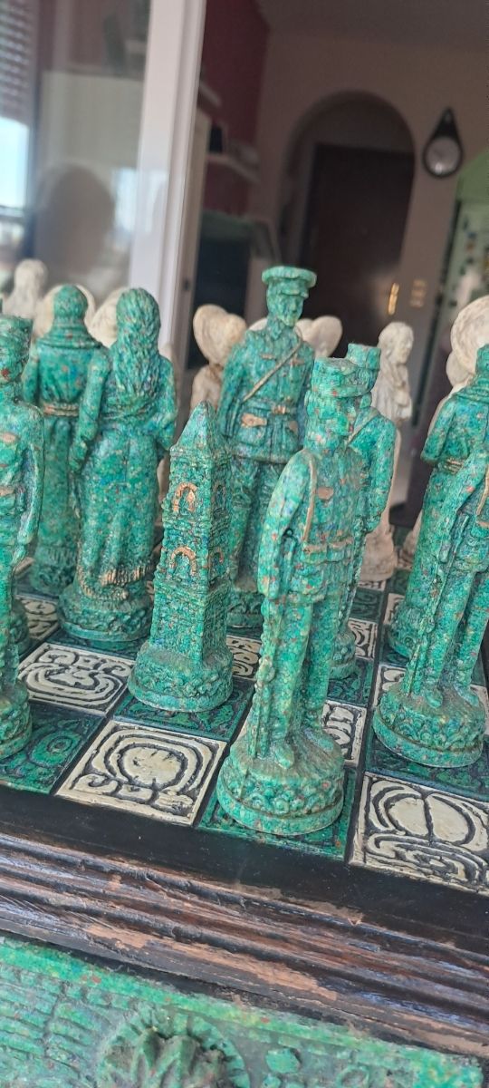 juego de ajedrez completo echo a mano con cajones interior para guardar las piezas en buen estado