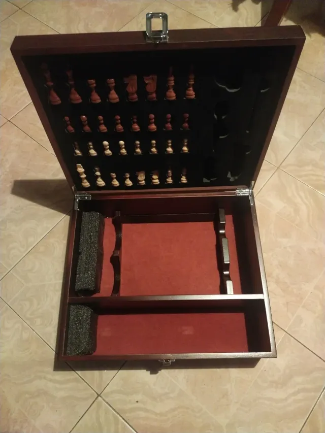 Elegante juego de ajedrez de madera con su propia caja de almacenamiento. - Piezas de ajedrez - Caja de madera con compartimentos para las piezas.
