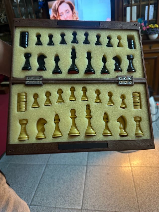 Detalles del productoSet de ajedrez completo en estuche de madera.