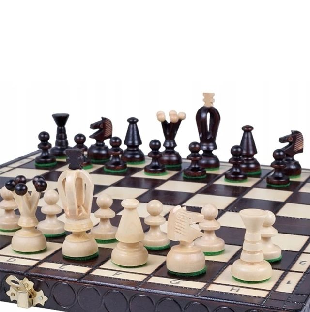 Espectacular juego de ajedrez fabricado de forma artesanal. Plegable. Tiene un forro de fieltro en el interior para el almacenamiento de las piezas. Hecho a mano.