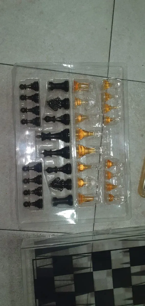 Detalles del productoSet de ajedrez con piezas de metacrilato transparente y negro. Incluye todas las piezas necesarias para jugar.