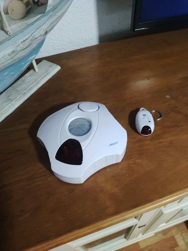Alarma para vivienda ó local ú otras funciones.Funciona con pilas(no incluidas).Tiene un sonido muy potente y a la vez se enciende luz 🚦.