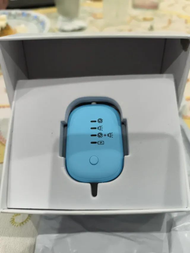 Dispositivo para la alarma de enuresis nocturna. - Color azul. - Diseño compacto y ergonómico. - Indicadores visuales y sonoros.