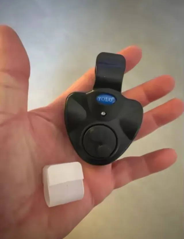 Dispositivo de alarma para pesca con clip. - Color negro. - Incluye tapa protectora blanca.