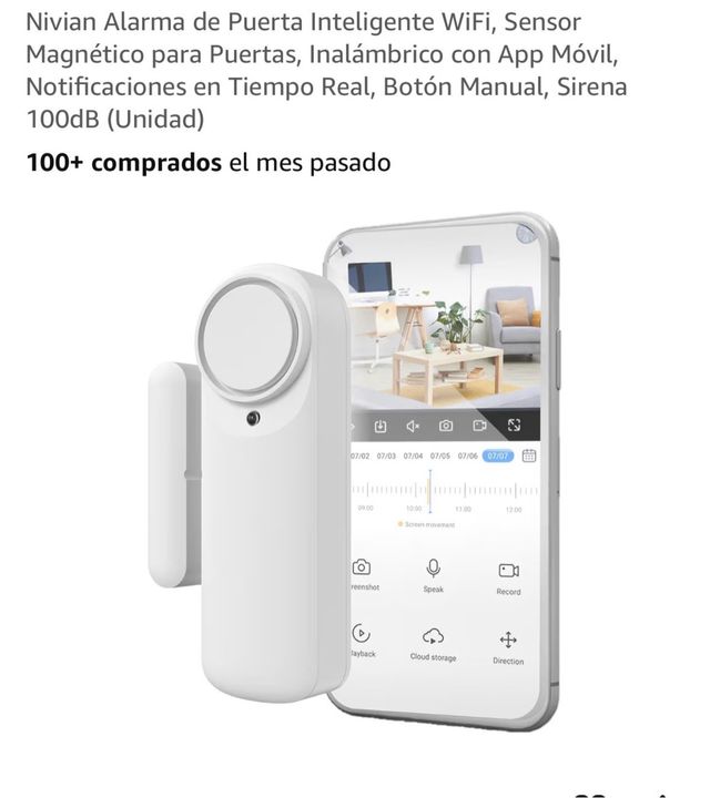 Detalles del productoAlarma inteligente para puertas con sensor magnético y conexión WiFi.