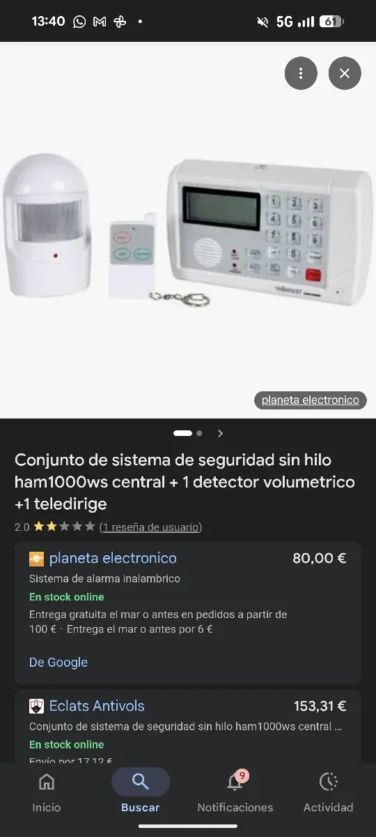 Sistema de seguridad inalámbrico Velleman ham1000ws con central y detector volumétrico. - Incluye mando a distancia. - Fácil de instalar. 40€ la unidad