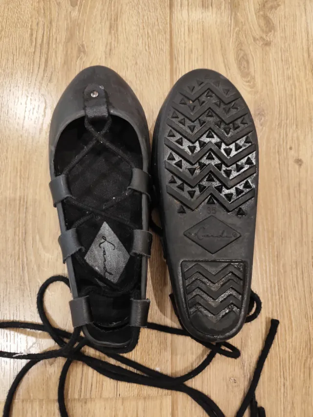 Albarcas de estilo baserritarra, perfectas para un look tradicional. - Color negro. - Cierre con cordones. - Suela antideslizante con diseño geométrico. - Talla 35.