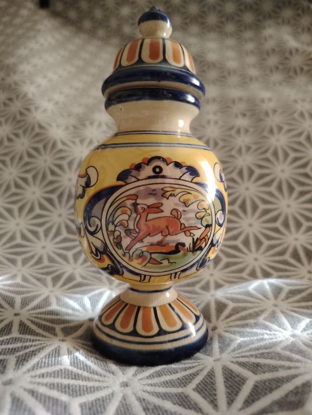 Detalles del productoPrecioso albarelo de cerámica, reproducción de RBA. Es una pieza pequeña y decorativa, ideal para coleccionistas. Sin caja ni leyenda. Impecable Medidas del producto