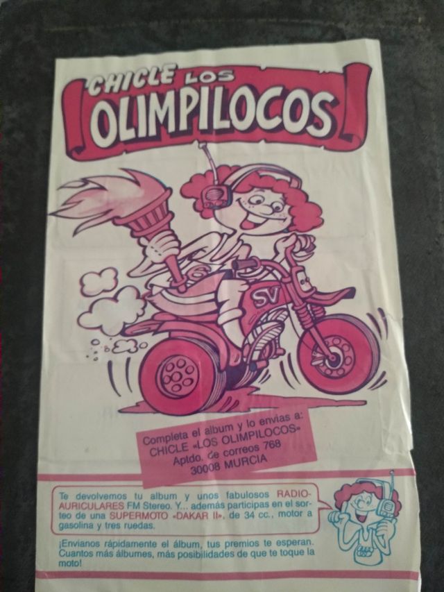 Álbum de cromos de chicles "Los Olimpilocos". Tal como se ve en las fotos.