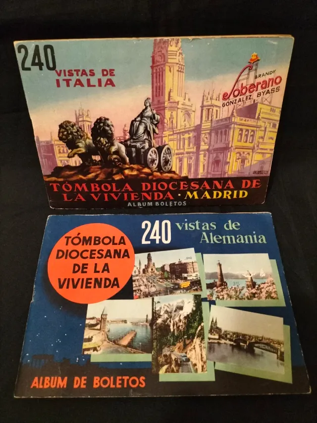 Detalles del productoColección de dos álbumes de cromos antiguos, tómbola diocesana, años cincuenta.