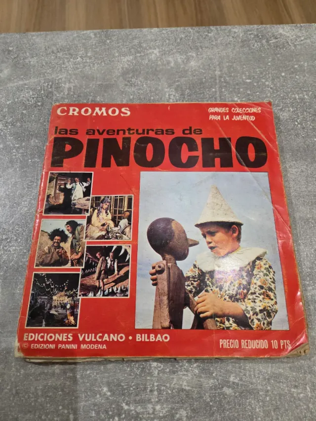 Detalles del productoColección de album de cromos de Las Aventuras de Pinocho de Ediciones Vulcano 1972 - Esta Incompleto - Tiene mas de 140 cromos pegados de 360 que tiene el album para completarlo - Algo desgastado - alguna hoja puede que despegada - Mirar bien las imagenes