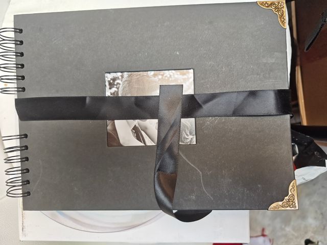 Álbum de fotos negro con cinta