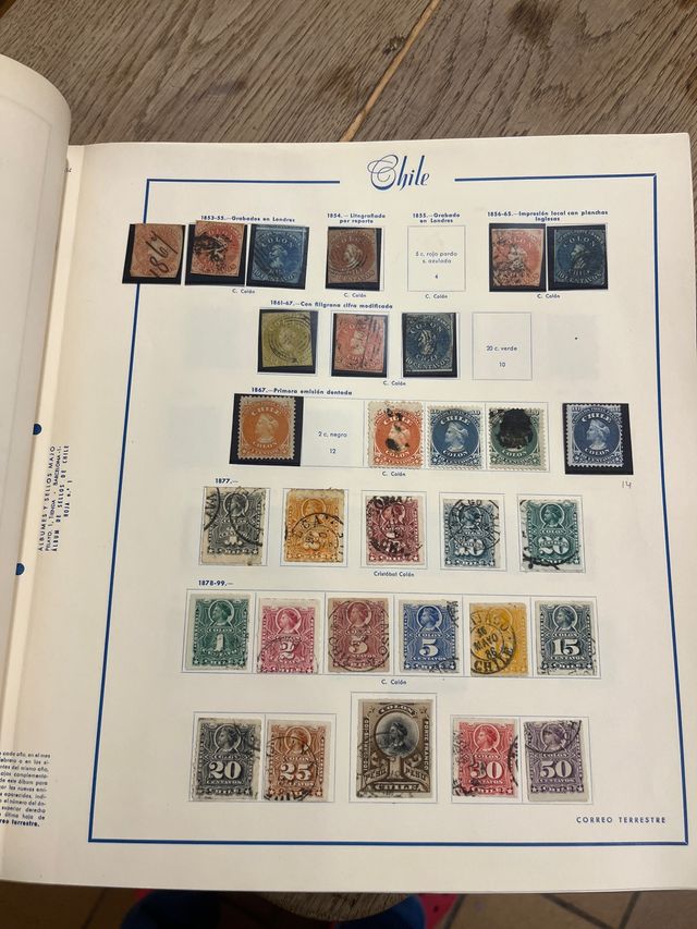 Álbum de sellos de Chile que abarca desde 1853 hasta 1970, incluyendo también sellos de correo aéreo.