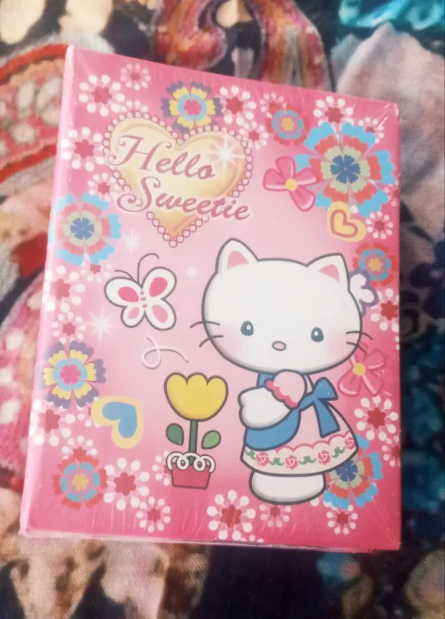 Detalles del productoÁlbum de fotos infantil con un diseño encantador de Hello Kitty y la frase Hello Sweetie. Perfecto para guardar recuerdos especiales.