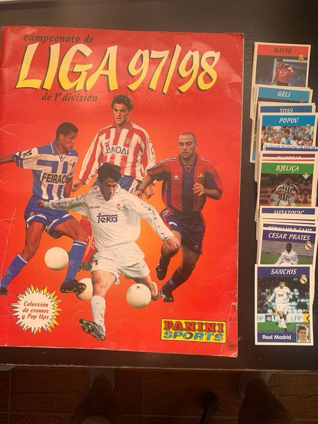 Pegados 257 cromos sin contar las hojas de fichajes porque en ellas han pegado repetidos, algún fichaje si corresponde + 49 sueltos sin pegar un total de 306 cromos