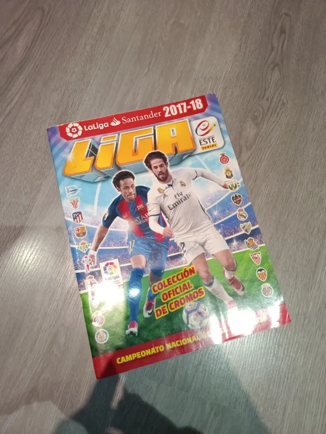 Álbum de cromos de la Liga Santander de la temporada 2017-2018. Vacío. Sin ningún cromo pegado. Incluye los cromos promocionales.