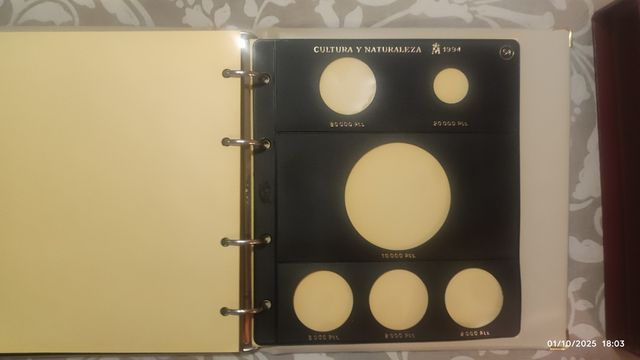 - Espacios para monedas de 80000, 20000, 10000, 5000 y 2000 Pts.