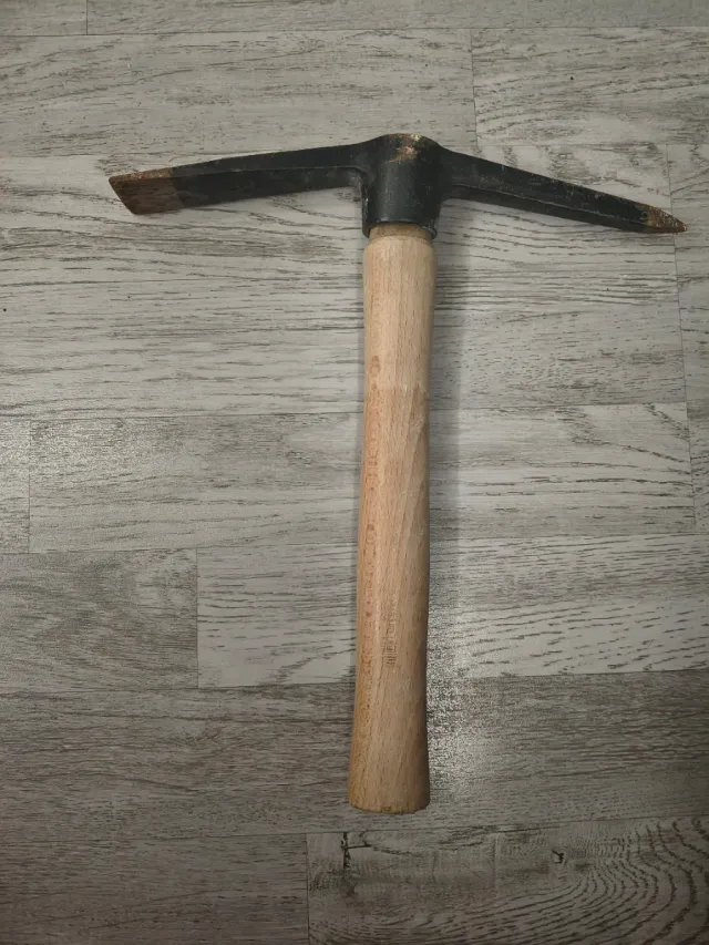 Herramienta de mano Bellota. - Mango de madera. - Cabeza de metal con dos puntas.