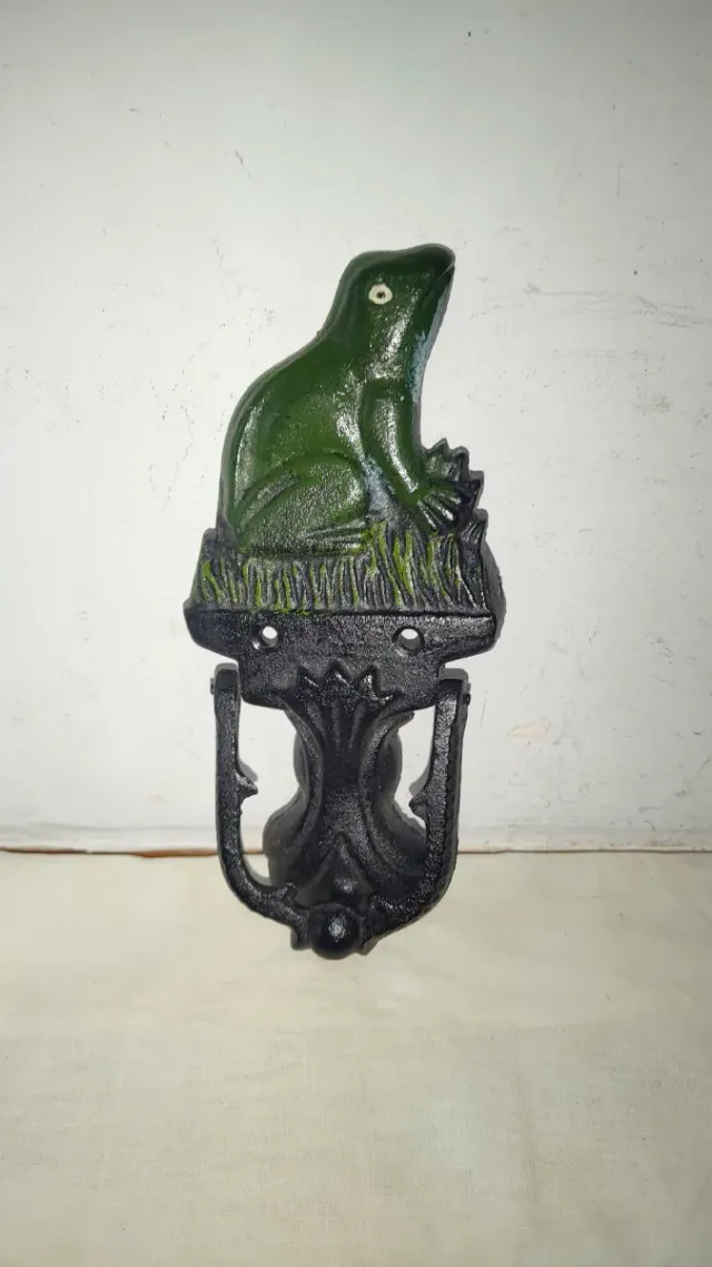 Detalles del productoLlamador, aldaba decorativa antigua para puerta con forma de rana.
