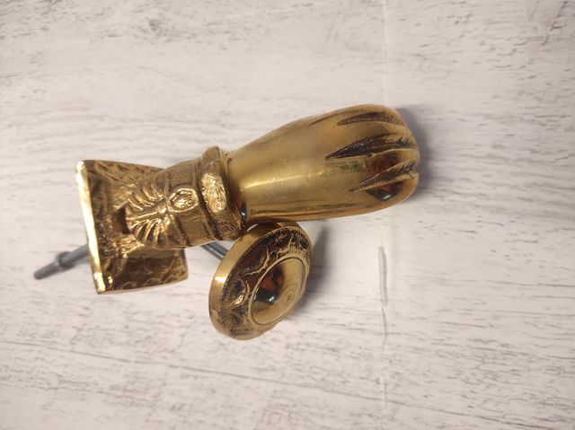 Llamador o aldaba de mano con bola realizado en bronce. medidas 12 cm de largo y 5 cm de diámetro la parte donde golpea